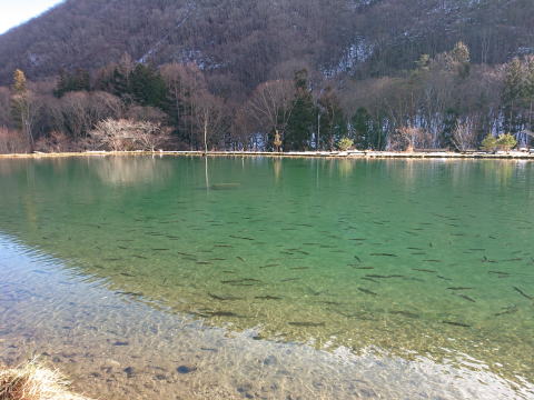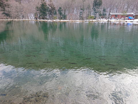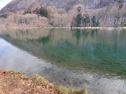 | 魚も大きいので沖の魚影も確認出来ます | 産卵床の清掃を行いました |