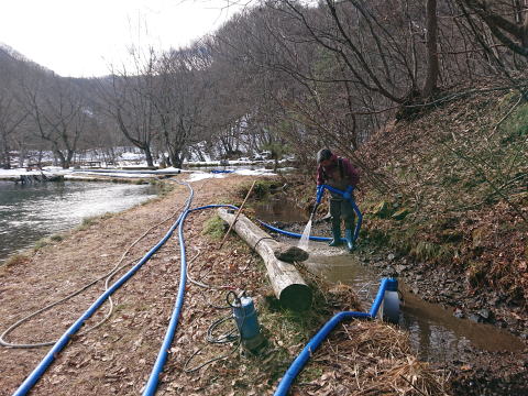 | 忙しくて 今になって産卵床の清掃を行い数日掛けてようやく終了 あとは遡上してもらうだけ |