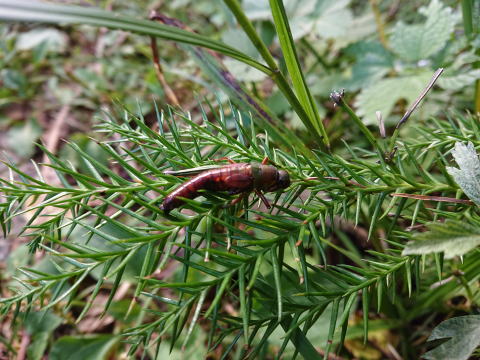 今日のロストラベイビー 自身より大きなミミズを咥えて離さない |